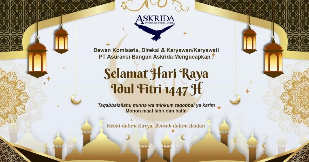 “Kami keluarga besar PT Asuransi Bangun Askrida mengucapkan: Taqabbalallahu minna wa minkum, taqabbal ya karim. Semoga Idul Fitri membawa keberkahan dan semangat baru bagi kita semua. Wassalamualaikum warahmatullahi wabarakatuh.”