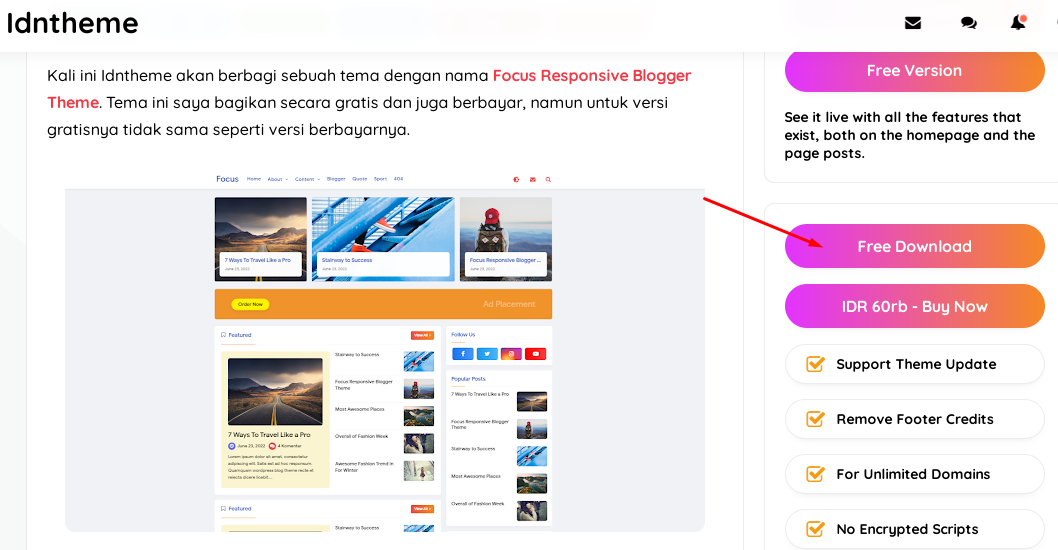 Ya, salah satu theme terbaik yang saya rekomendasikan adalah idntheme dari Arlina seoarang blogger profesional.