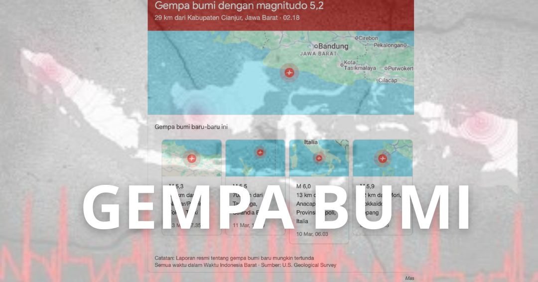 SUKABUMI, 13 Maret 2026 — Gempa Sukabumi M5,4 mengguncang wilayah Jawa Barat pada Jumat dini hari pukul 02.18 WIB. Getaran yang terasa kuat membuat warga di Sukabumi hingga Cianjur panik dan berhamburan keluar rumah saat sebagian masyarakat sedang bersiap untuk sahur. Hingga kini belum ada laporan kerusakan maupun korban akibat gempa tersebut.